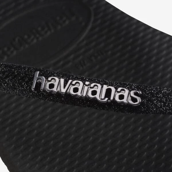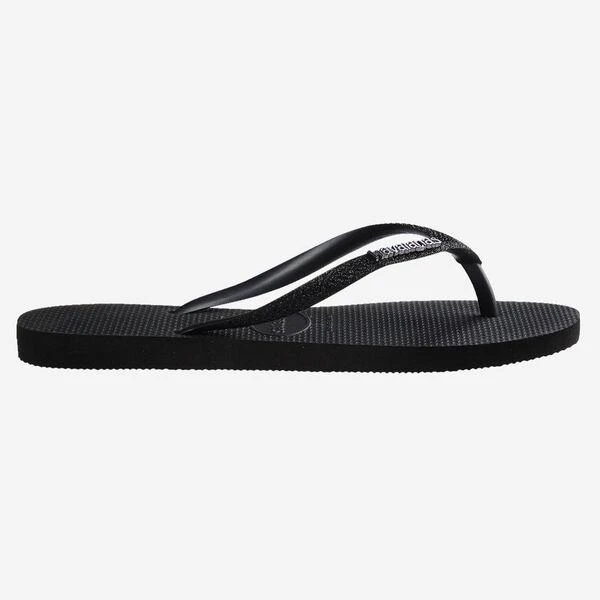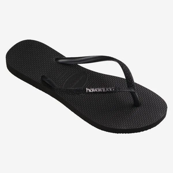 Teenslipper met dun zwart bandje met glitters
