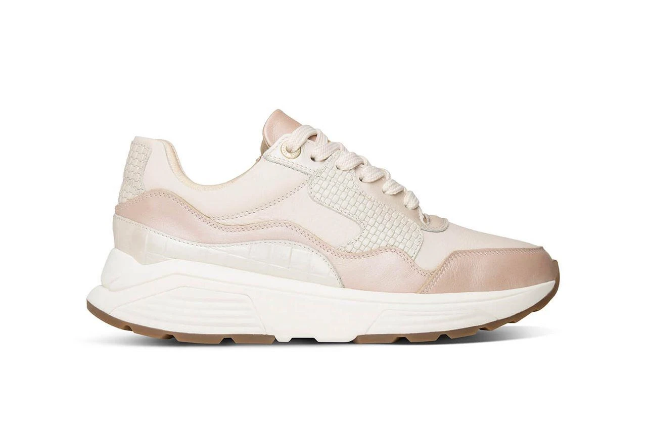Off white sneaker met roze accenten