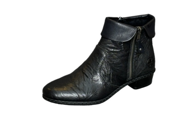 Zwart enkellaarsje met 2 ritsen.